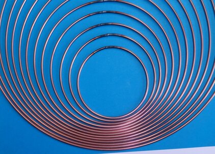 Welded rings manufactured from stainless steel wire grades 1.4301 and 1.4571. Wire rings made of brass wire (MS63), butt-welded and deburred.